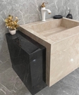 Умивальник з керамограніту для ванної кімнати - це ідеальне поєднання функціональності та естетики. Можливість замовити умивальник із власними розмірами дозволяє оптимально використовувати простір вашої ванної кімнати. Вибір між умивальником із стільницею чи без неї, а також розташуванням раковини праворуч або ліворуч, повністю залежить від ваших вподобань.